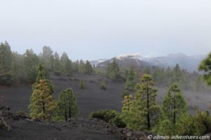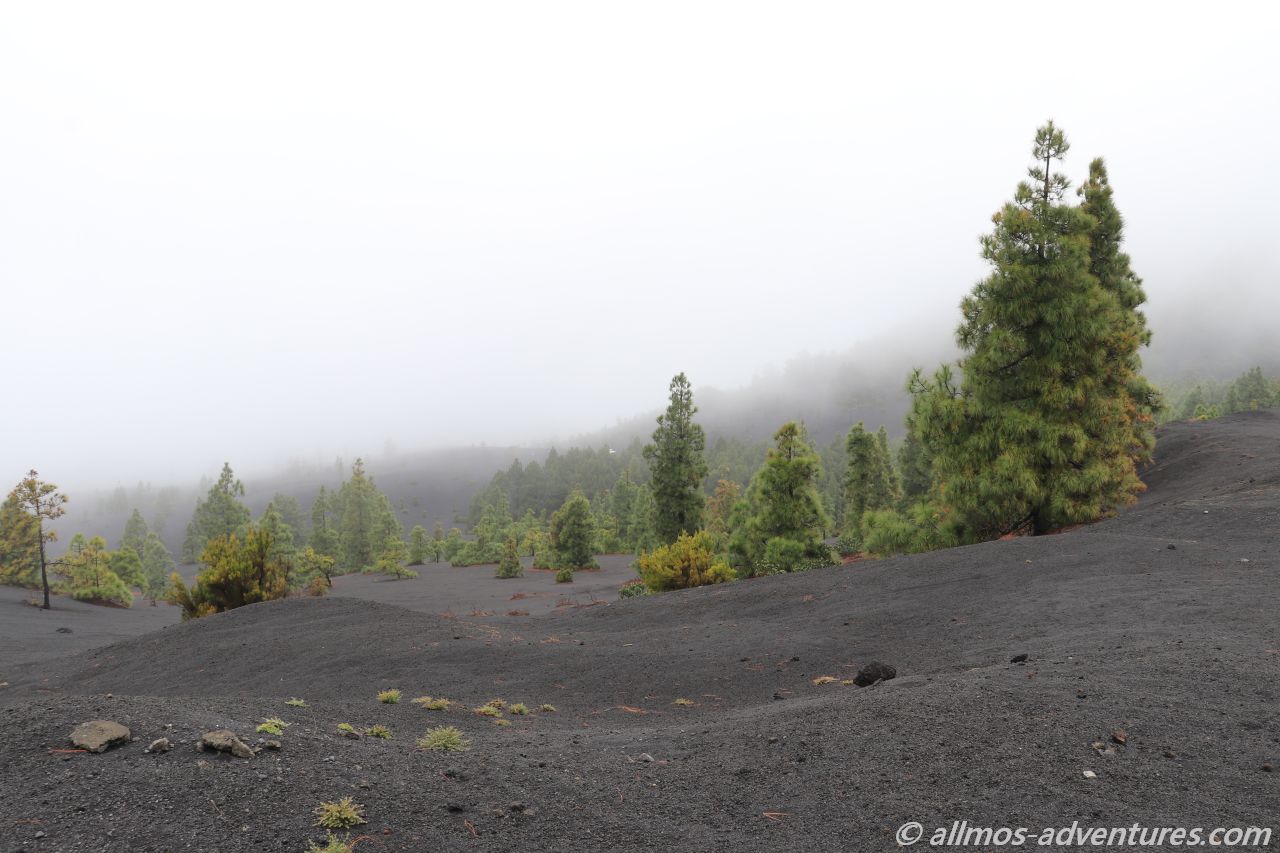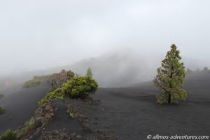 Unseren nächsten Stopp legten wir am Mirador Astronomico del Llano del Jable ein. Richtig mystisch ging es dort zu. Der graue Dunst zog an uns vorüber und die Bäume wurden darin eingehüllt. So schlimm war es also gar nicht, dass der Himmel nicht strahlend blau war. Jetzt kam eher ein wenig Endzeitstimmung auf.