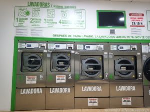 Gerne hätte ich nur eine große Waschmaschine (20 Kilo für 7 Euro) gefüttert. Allerdings waren beide in Nutzung und ich hätte noch beinah eine halbe Stunde warten müssen. Also nahm ich die beiden 13 Kilo Waschmaschinen in Beschlag (je 5 Euro). Nach einer guten halben Stunde waren die Maschinen durchgelaufen und ein kleiner Anteil davon wanderte noch in den Trockner. Diesmal wählte ich nur die kleinste Temperatur, damit das Spannbetttuch nicht noch mehr Brandlöcher bekommt. Nach 24 Minuten war das meiste trocken. Nur die Waschlappen und Handtücher waren noch etwas feucht. Ich funkte Frank an, dass ich mich zur Hauptstraße begebe, und er sammelte mich an einer Bushaltestelle wieder ein. Jetzt können wir mit sauberer Wäsche nach La Gomera aufbrechen.