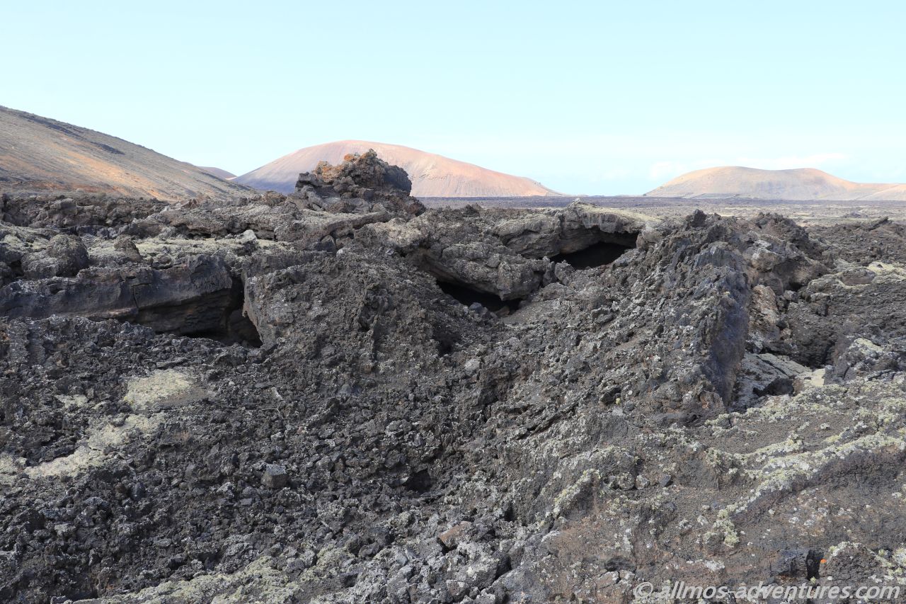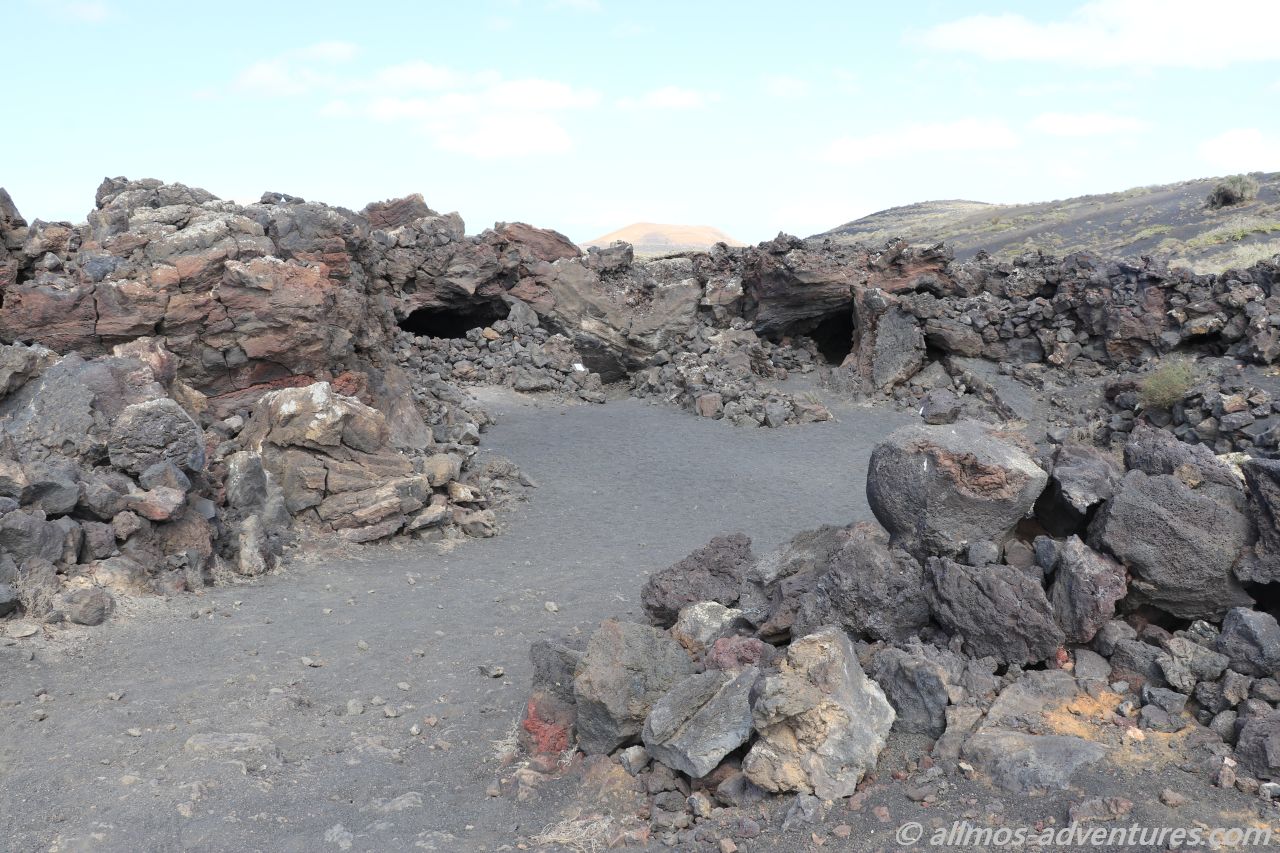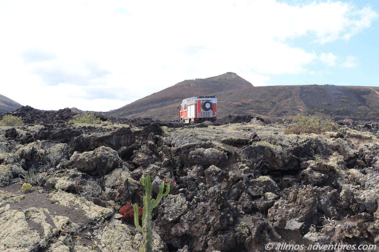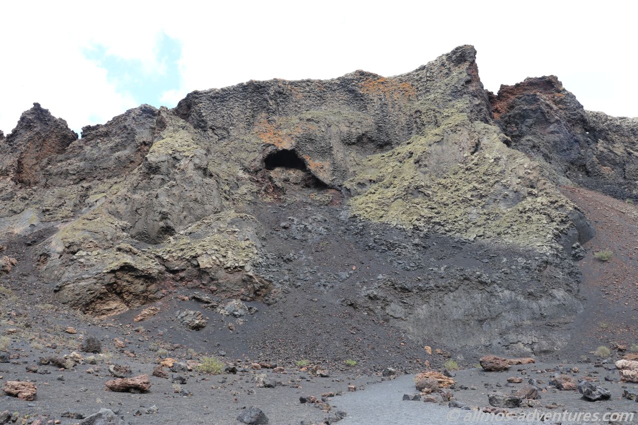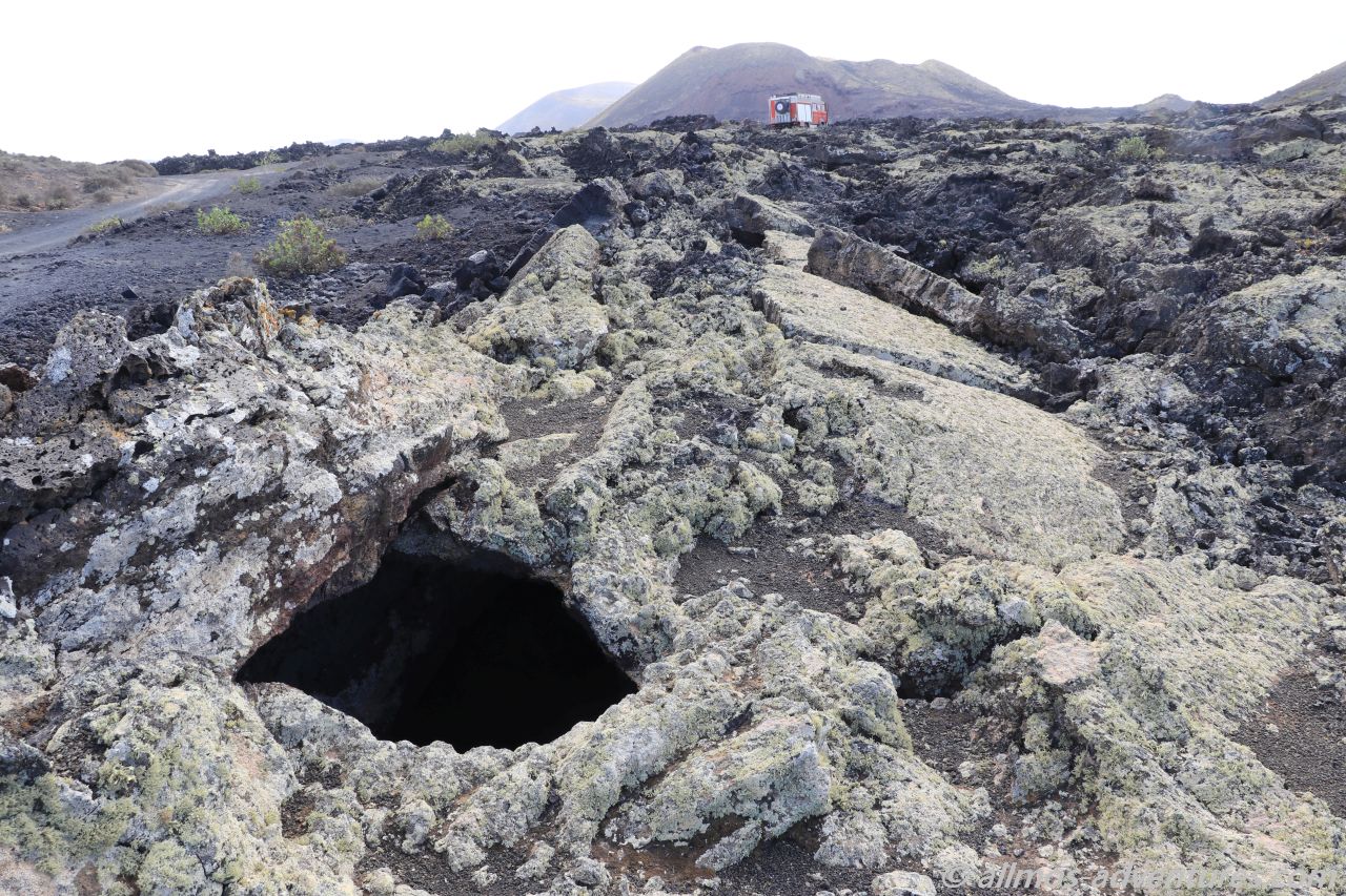 Einen weiteren Zwischenstopp legten wir bei der Cueva de Ortiz ein. Die Anfahrt dorthin durch das Lavafeld war schon spektakulär. Zunächst war die Lava um uns rum nur etwa kniehoch. Doch dann türmte sie sich plötzlich meterhoch rechts und links neben der Piste.