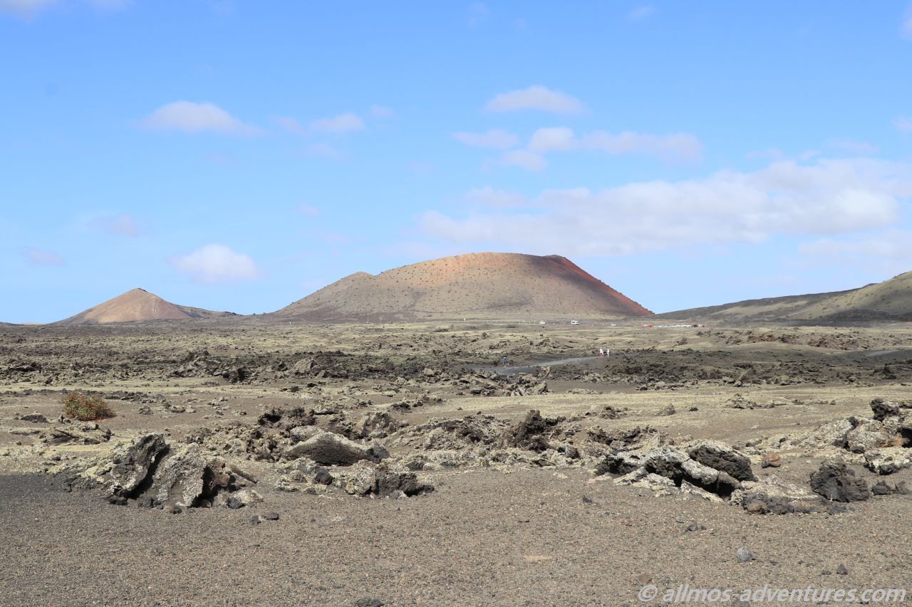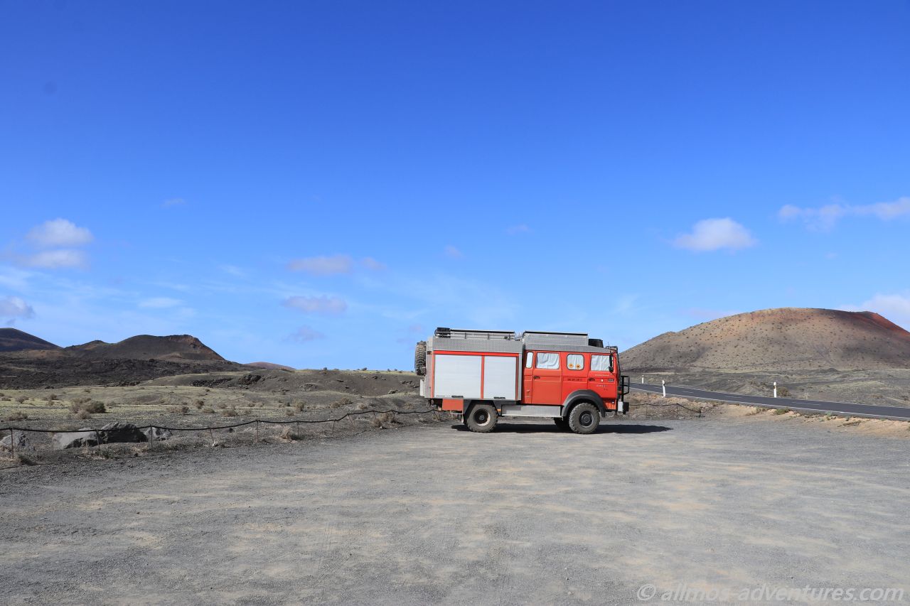 Wir fuhren wieder durch die Lavafelder zur Hauptstraße zurück. Entlang der Hauptstraße befinden sich mehrere größere Parkplätze. Wir steuerten die Parkplatz für die Caldera de Los Cuervos an. Dies war der am meist besuchte Parkplatz.
