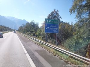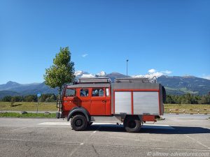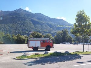 Nach einer kleinen Stärkung verließen wir nach etwas weniger als 3 Stunden den Platz (1 CHF, denn die erste Stunde ist gratis) und fuhren wieder in die Schweiz. Eine Übernachtung wäre dort zwar möglich gewesen, aber der Platz war – abgesehen von der Kulisse – nicht so schön.