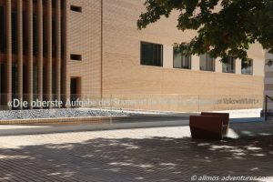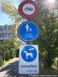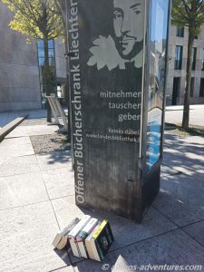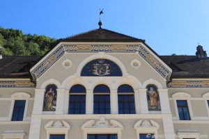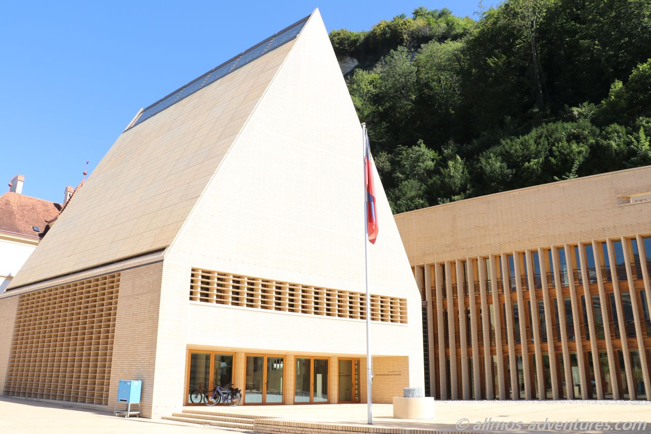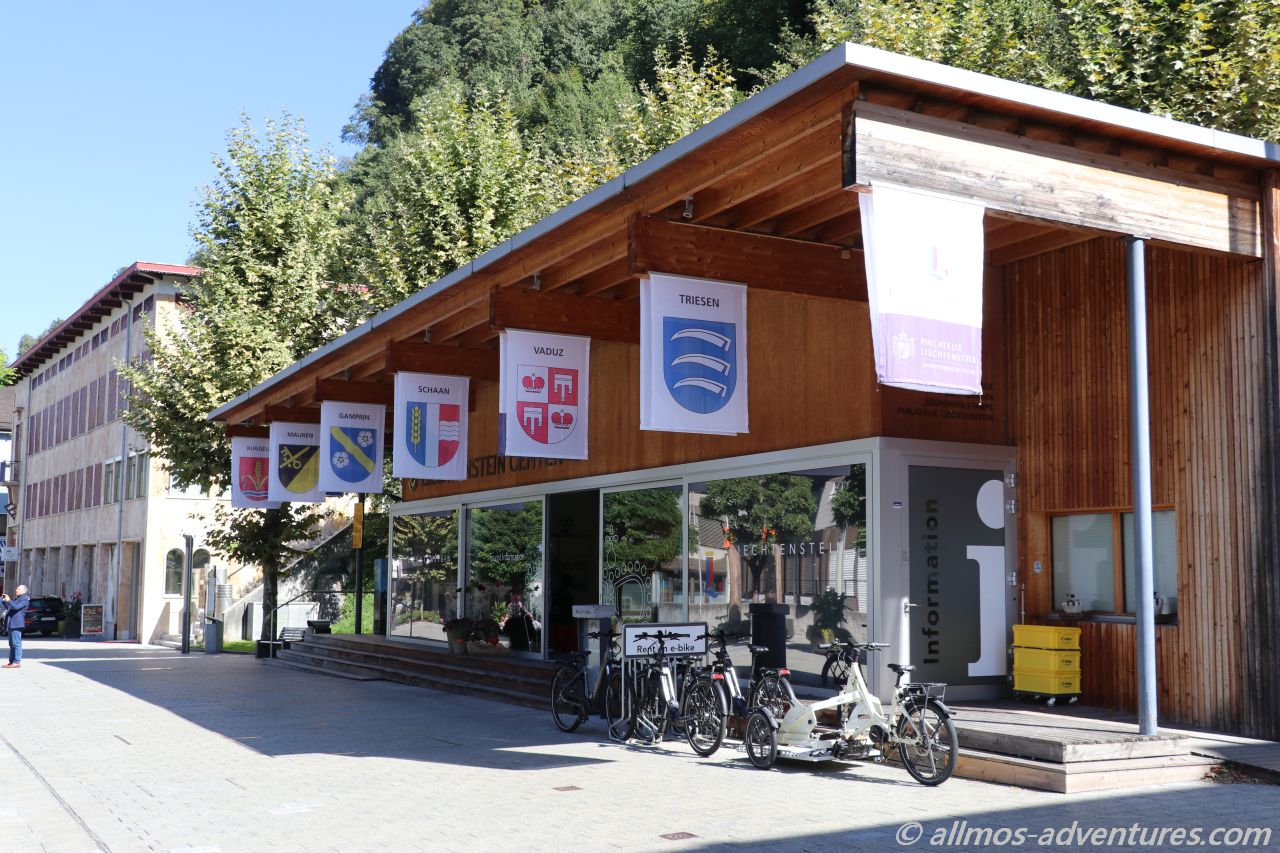 Wir bummelten in Vaduz vorbei am Regierungsgebäude, Landtagsgebäude, dem Landesmuseum und der Touristeninformation. Gegenüber davon befand sich ein Bücherschrank, den ich direkt mal plünderte und mit einer Auslese von sechs Büchern wieder verließ. Nicht das ich schon genug Bücher in Allmo mitgenommen hätte. Sehr viele Bankhäuser reihten sich aneinander. Das Schloss sahen wir nur aus der Ferne und drehten dann wieder zum Rheinpark Stadion ab.