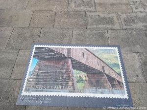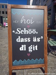 Zu Fuß gingen wir den kleinen Rhein entlang, auf die alte hölzerne Rheinbrücke von 1871 zu. Diese wurde irgendwann mal renoviert, um sie an dem alten Standort zu erhalten. Bis ins Städtchen war es ein guter Kilometer. Erschreckenderweise haben wir beide von den ersten Wanderungen immer noch leichte Schmerzen in den Fußfesseln. Wir scheinen mächtig zu rosten. Was waren wir zu Anfang unserer letzten Reise in Luxemburg alles gewandert? Jetzt wären wir nicht dazu in der Lage. Vielleicht ist es aber auch eine Kopfsache. Wer weiß…