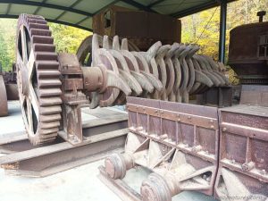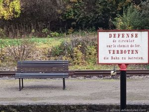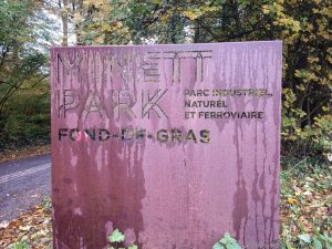 Zu Fuß gingen wir daher zum Minett Park Fond-de-Gras. Einem ehemaligen Industriegelände, auf dem im Sommer sonntags eine Schmalspurbahn für Touristen fährt. Die Züge von um die 1900 waren leider nicht zu sehen und versteckten sich hinter großen Hallentoren.