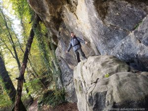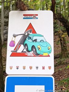 Zur Kalektuffquell mussten wir nun ein ganzes Stück zurück laufen. Der Anblick des kleinen Wasserfalls war schön, so dass die Quälerei sich doch gelohnt hatte. Nun mussten wir wieder ein ganzes Stück in die Richtung aus der wir kamen und dann weiter geradeaus Richtung Müllerthal. Nach fast 14 km (anstatt 10 km) und etwas über 4 Stunden erreichten wir endlich wieder Allmo. Uns reichte es! Der Parkplatz war gut gefüllt, aber es gab genug Platz für uns zum herausfahren. Nachdem wir Emma vorne angeschnallt und das Hubdach heruntergefahren hatten, ging es los. Bis zu unserem nächsten Ziel Beaufort waren es nur 10 km.