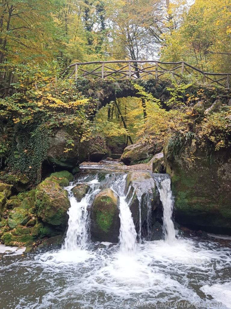 Wir hielten uns also von Consdorf kommt in Richtung Schiessentümpel im Müllerthal und steuerten den dortigen Wanderparkplatz an. Es gab keine Schilder, die das übernachten für Campingfahrzeuge verbieten. Also suchten wir uns einen schönen Platz aus. Wo wir schon mal da waren gingen wir noch das kurze Stück zum Schiessentümpel über den eine alte Bogenbrücke führt und das Wasser als kleiner aber lauter Wasserfall herunter plätscherte.