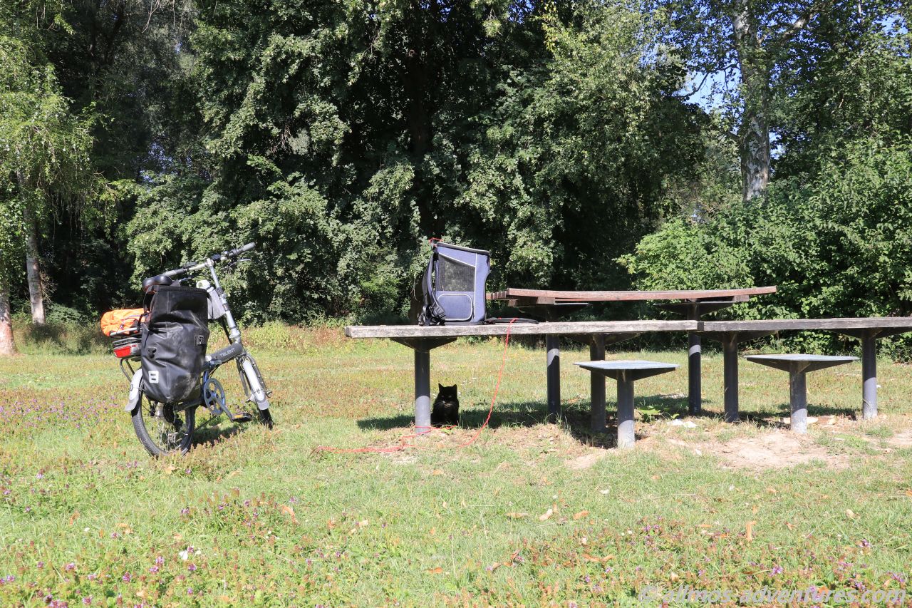 Doch der schlechte Bodenbelag, die mangelhafte Beschilderung und die lange Strecke durch den Wald waren noch nicht alles. Hinzu kam auch noch eine sehr übel gelaunte Katze, die wenig bis überhaupt keinen Bock darauf hatte durch die Gegend gefahren zu werden. Positiv sei immerhin angemerkt, dass es den wesentlichen Teil der Strecke bergab ging.