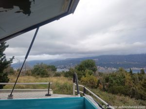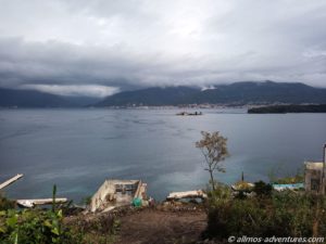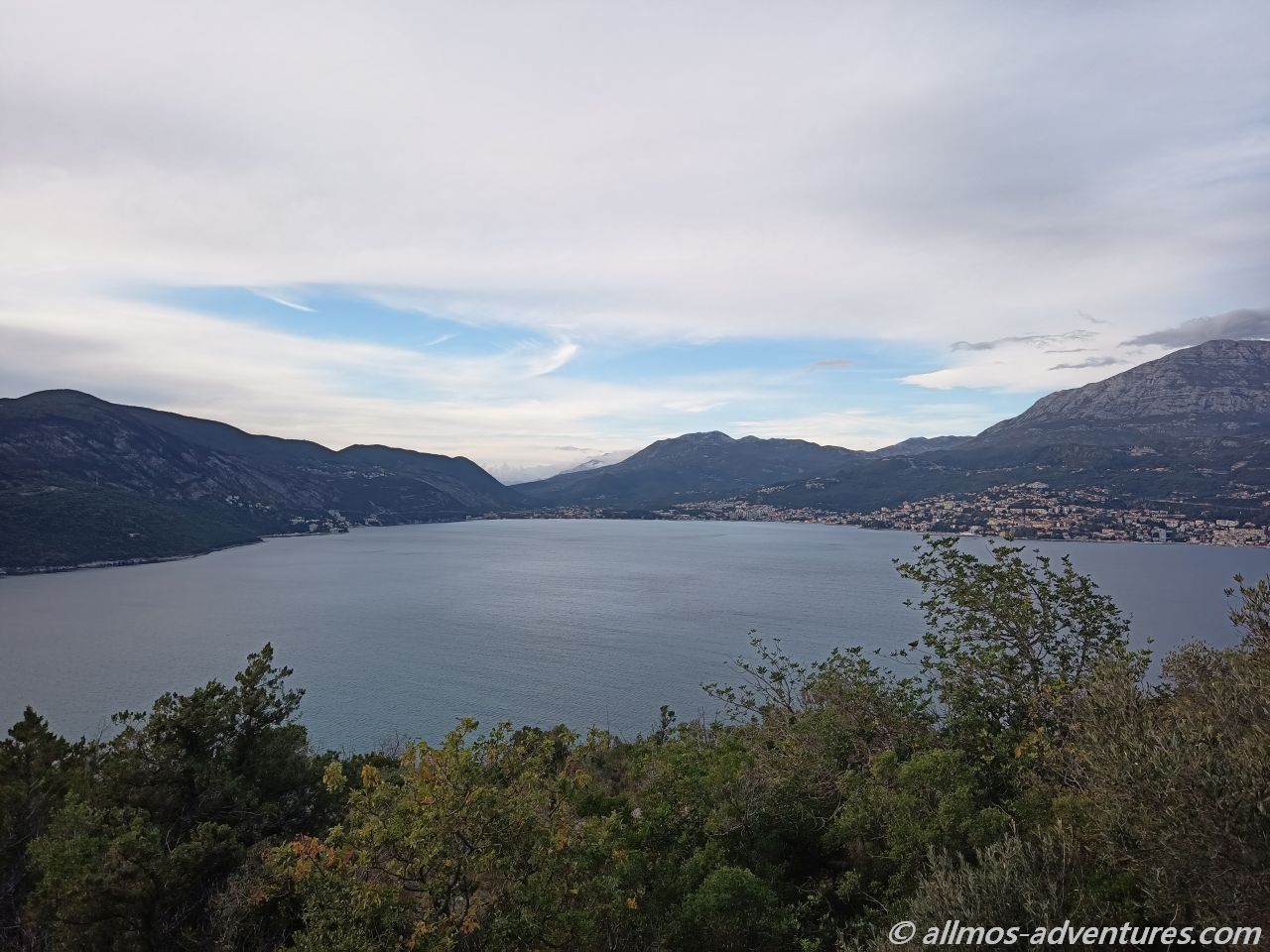 Von oben erblickten wir die Halbinsel Prevlaka, die zu Kroatien gehört. Vor ungefähr 10 Tagen standen wir dort, am anderen Ende der Zufahrt zur Bucht von Kotor, über Nacht.