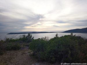 Wir nahmen den gleichen Weg, den wir auch gekommen waren. Somit vermieden wir, dass wir plötzlich irgendwo im Gestrüpp landeten (also einer zu schmalen Strecke, wo die Bäume und Sträucher zu nah am Fahrweg standen). Denn ebenso wie die Halbinsel Prevlaka auf kroatischer Seite, ist die Halbinsel Lustica auch sehr stark bewachsen.