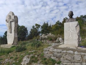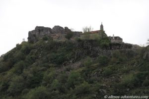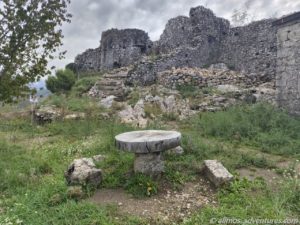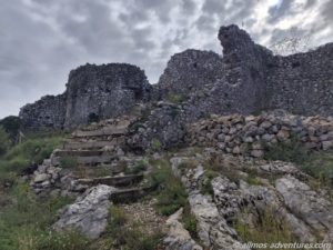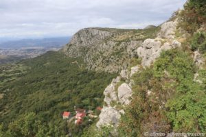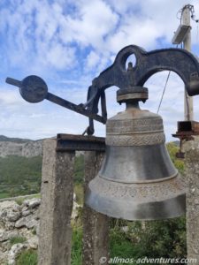 Vom Parkplatz gingen wir weiter zur Festung Medun hoch. Gut erhalten ist die kleine Kapelle, die jedoch verschlossen war. Durch ein Fenster konnten wir einen sehr vagen Blick hineinwerfen. Imposant ist die Glocke, die sich auf Augenhöhe befand. Von der Festung selbst sind noch ein paar Mauern übrig.