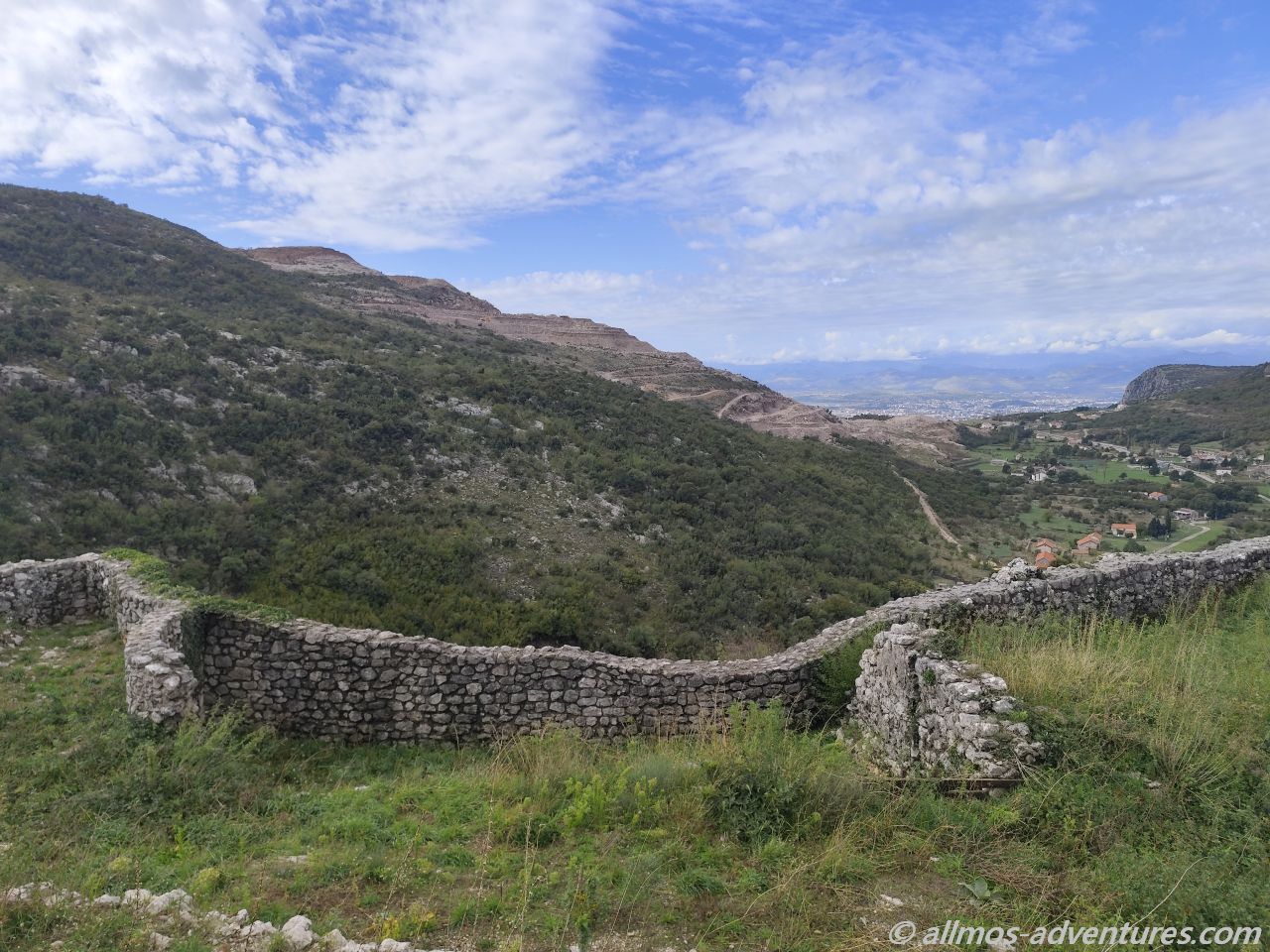 Den nächsten Stopp legten wir bei der Festung Medun ein. Frank war etwas sauer, als wir den Weg zur Festung hinaufliefen. Wir hatten Allmo an der Straße abgestellt, weil ich den Parkplatz auf Karten-Gockel übersichtlich fand und wenn dort Pkws parken, dann wäre es für uns schwierig geworden. Es ging von der Straße schön berghoch und natürlich war der Parkplatz leer, so dass ein Drehen und Wenden vermutlich in einem Zug möglich gewesen wäre. Ja, aber konnte ich das Ahnen? Außerdem sprechen wir von einem Weg von vielleicht 400 Metern, das sollte zu verkraften sein.