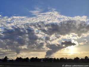 Es zog sich immer mehr zu und erste Tropfen fielen vom Himmel. Innerhalb der nächsten Minuten schütte es wie aus Eimern. Richtung dicke Tropfen fielen auf die Windschutzscheibe und sahen fast aus wie Hagelkörner.