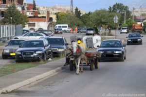 Wir fuhren zunächst Richtung Podgorica und passierten die straßeneigenen Müllkippen. Säckeweise lag der Unrat direkt neben der Fahrbahn. Für die Müllabfuhr ein Kampf gegen Windmühlen. Die bekommen das so ja gar nicht abtransportiert.