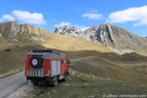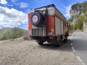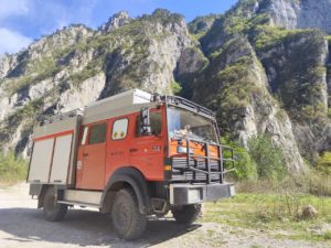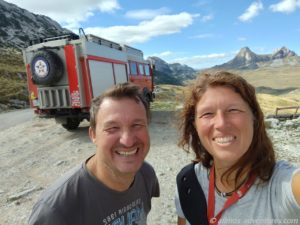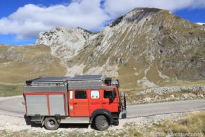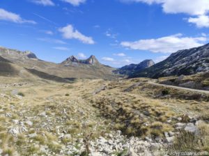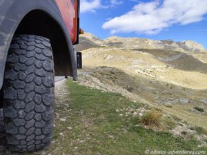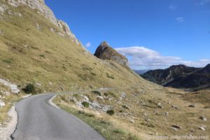 Wir genossen die Aussicht auf die Berge des Durmitor Nationalpark, die uns auch jetzt begeisterten. Der viele Gegenverkehr war gut händelbar. Und oft genug blieben auch die Touristen mit ihren Leihwagen stehen, damit wir passieren konnten. Wobei wir vermutlich genauso oft an geeigneten Stellen auswichen. Es ist halt ein Geben und Nehmen. Wir möchten nicht wissen, was im Sommer im Durmitor los ist.