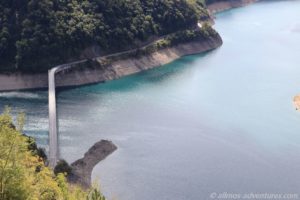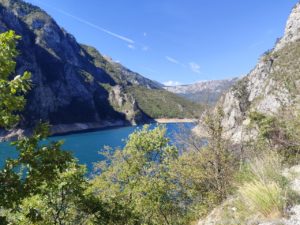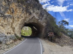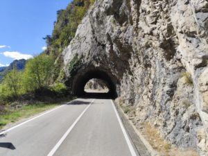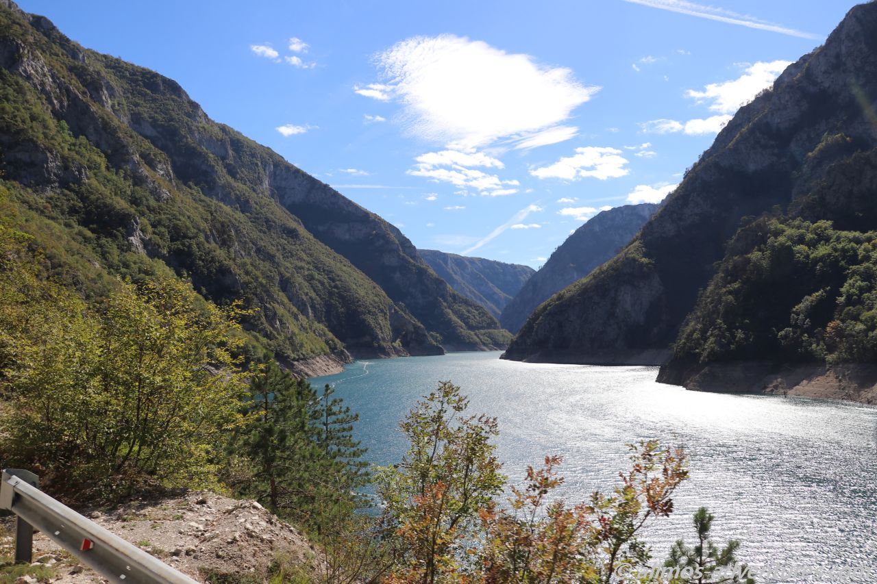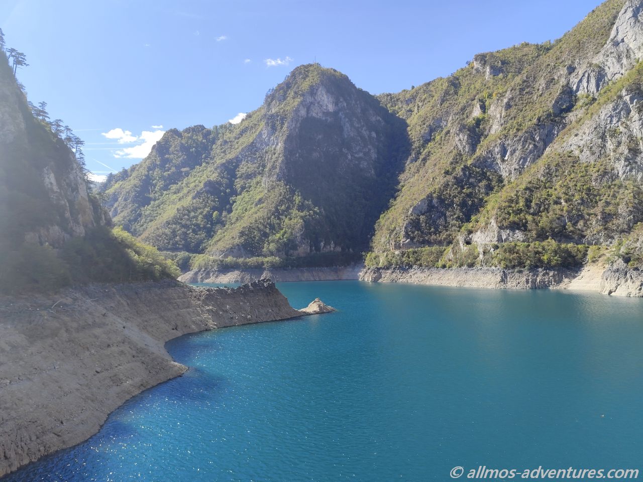 Der Abzweig von der M18 auf die P14 hatte es direkt in sich, bogen wir quasi direkt in einen Felsentunnel ab. Auch auf den nächsten Kilometern durchfuhren wir immer wieder Tunnel. An mehreren Stellen konnten wir auf den Piva Canyon und See zurückblicken.
