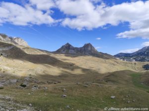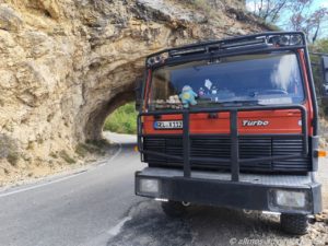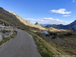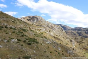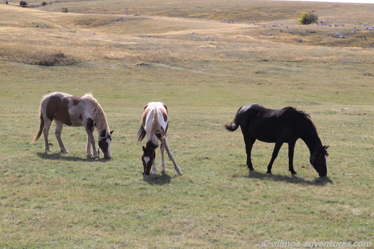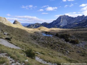 Im Gegensatz zu unserer letzten Durmitor Durchfahrt, die ja ungefähr 6 Wochen später (also Mitte November) im Jahr war, herrschte nicht nur mehr Verkehr auf der Straße (Leihwagen, die verschiedensten Camper, Motorradfahrer und sogar zwei Radfahrer waren unterwegs), sondern es gab auch immer wieder kleine Biergärten, die auf Besucher warteten. Die gab es damals nicht oder sie hatten geschlossen und sind uns deshalb nicht in Erinnerung geblieben.