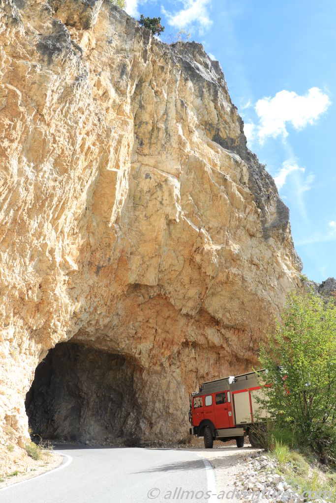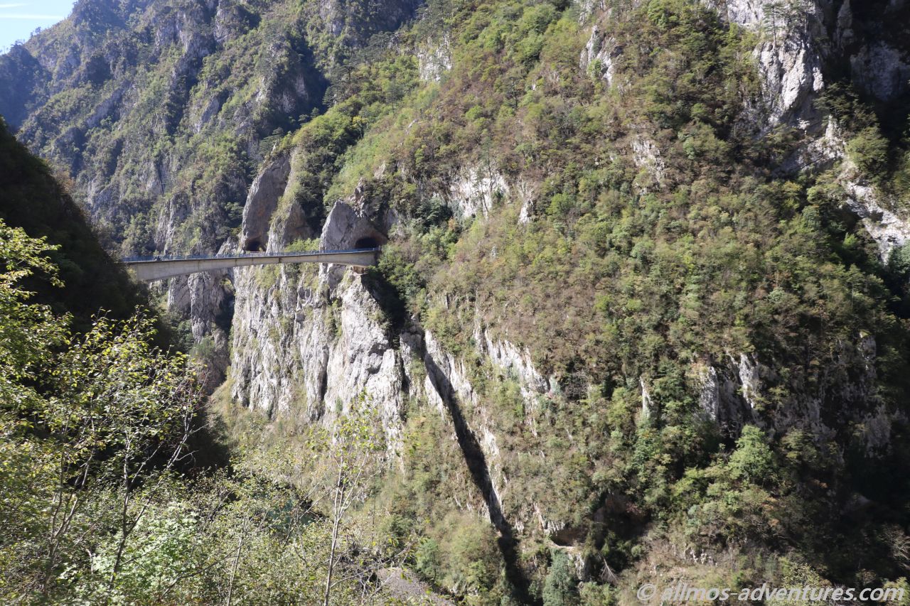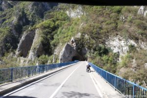 Dann überquerten wir die Tara und fuhren über zig Kilometer entlang des Piva Sees. Über 50 Tunnel durchfuhren wir und immer wieder blickten wir auf den Piva See. Was war das nur für eine Straße?!?!?!