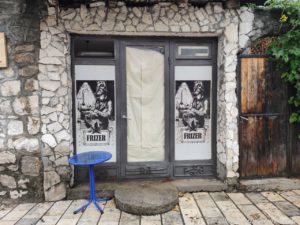 In Podgorica steuerten wir zunächst einen Baumarkt an, weil Frank dort eine gummierte Folie kaufen wollte, die wir über unseren Durchgang legen können. Unsere Teichfolie ist für den hochgefahrenen Zustand zu kurz.