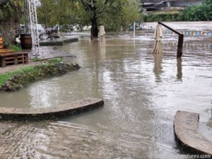 Unterwegs sahen wir einige überschwemmte Flächen. Auch auf den Straßen hatte sich teilweise das Wasser gesammelt. Wie gut, dass wir über ausreichend Bodenfreiheit verfügen und uns keine weiteren Gedanken machen müssen.