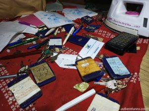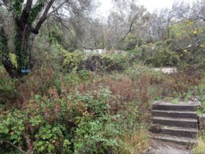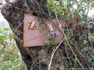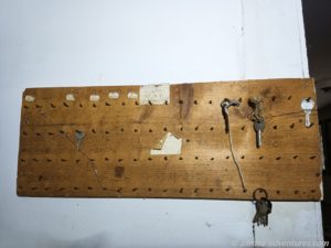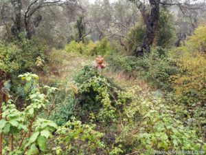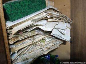 Der Weg zur Rezeption etwas beschwerlich. Als wir uns endlich den Weg über die Brombeersträucher gebahnt hatten, stellten wir fest, dass die Rezeption nicht besetzt war. Die aktuellsten Papiere, die an der Rezeption und in dem Nebenraum herumlagen waren von 2007, die ältesten von Anfang der 90er Jahre. Es hatte also schon lange niemand mehr eingecheckt, was uns bei der schönen Lage in der Bucht verwunderte.