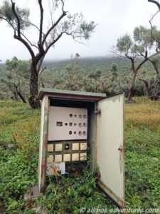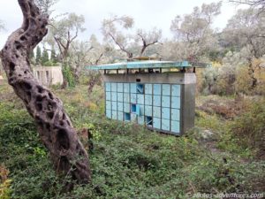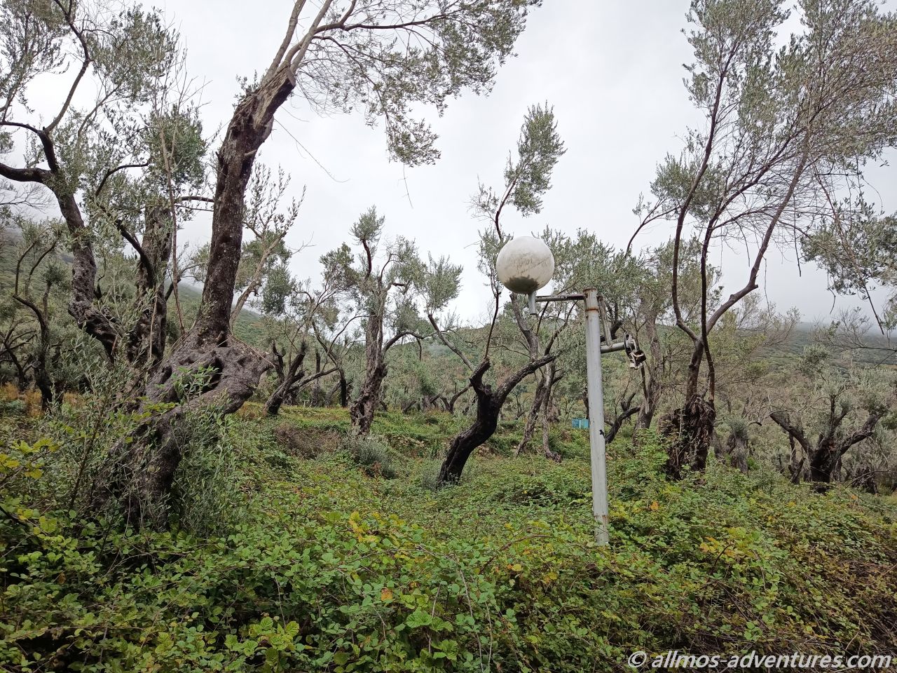 Hinter der Rezeption befand sich das Gelände für die Camper. Schön gelegen zwischen Olivenbäumen. Sanitär und Waschhäuser, gab es auch. Sogar Spinte, um die Wertsachen einzuschließen (für die Leute mit Zelt) und Stromanschlussdosen. Wir waren schon fast geneigt, uns eine Parzelle auszusuchen. Allerdings war uns das Gelände dann doch etwas zu schief und zu stark mit Brombeeren bewachsen.