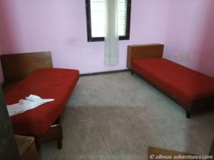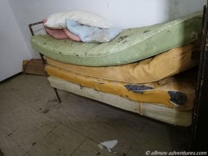 Zurück an der Rezeption war immer noch kein Mitarbeiter in Sicht. Daher schauten wir uns eigenständig zunächst in dem Gebäude gegenüber um. Mehr oder weniger ordentlich sortiert lagen in dem einen Zimmer Matratzen, in dem anderen Kopfkissen. Auf einem Bettgestell türmten sich mehrere Matratze. Ob dort die Prinzessen auf der Erbse übernachtet hatte?
