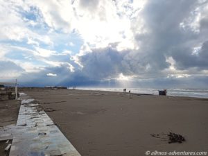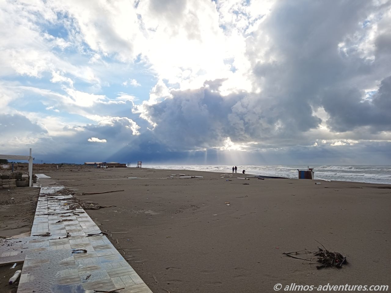 Mit Allmo fuhren wir dann durch Ulcinj durch und weiter bis zu einem Strandplatz in Stoj. Wir parkten mit Blick auf’s Meer und freuten uns, das mal kurzzeitig die Sonne zum Vorschein kam. Während wir mit Benjamin sprachen, den wir bereits am Mrtvica Canyon getroffen hatten, wurde ich von etwas in den Finger gestochen. Frank sah eine Wespe davonfliegen und ich war mehr als begeistert.