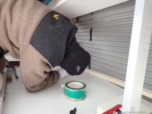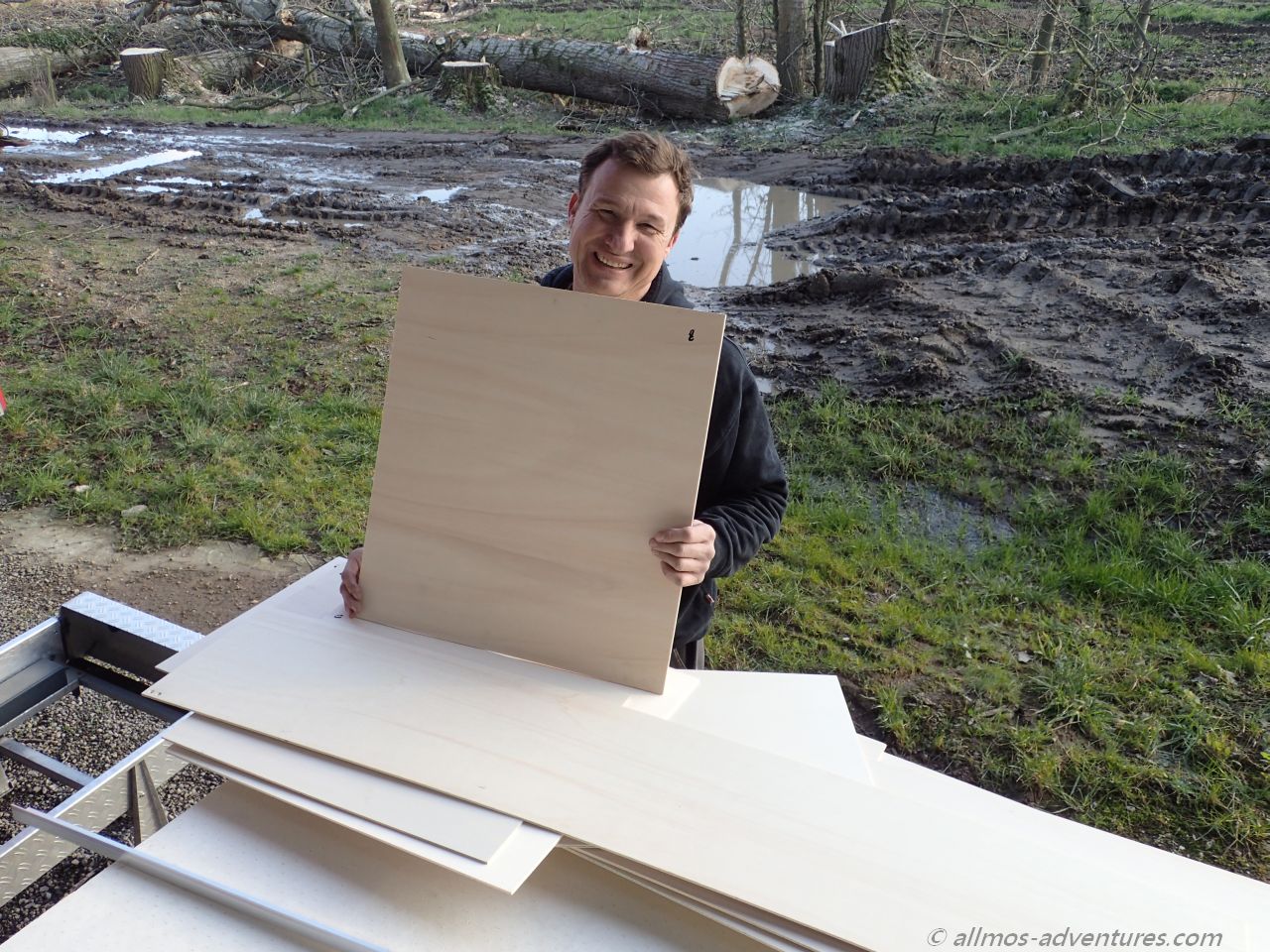 Während in den Karnevalshochburgen gefeiert wird, nimmt mein Koffer eine etwas wohnlichere Gestalt an. Die vier aktiven Jalousiekästen sind nun alle gedämmt und hoffentlich winddicht und inkontinenzdicht verpackt. Dabei wurden wieder Reste vom Hausbau (Unterspannbahn und Dampfsperrfolie) verbraucht, und unter das Blech Armaflex geklebt. Zur Unterfütterung werden Dachlatten an die Aluschienen mit Silikon angeklebt und festgebohrt.