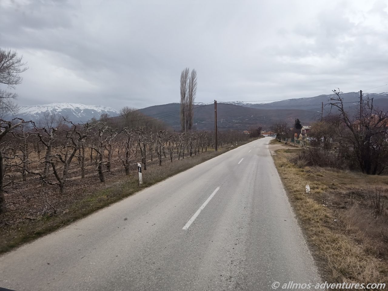 Auf dem Prespa See befindet sich ein Drei-Länder-Eck: Albanien, Griechenland, Nordmazedonien. Wobei der überwiegende Teil zum Nordmazedonien gehört. Umringt wird der See von hohen schneebedeckten Bergen, was fantastisch aussieht. Unterwegs befanden sich rechts und links der Straße unzählige Felder mit Apfelbäumen. Anscheinend befinden wir uns in der Apfel-Metropole Nordmazedoniens.