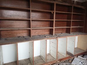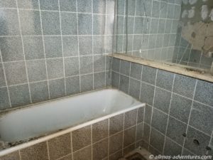 Wir arbeiteten uns von unten nach oben. Die Zimmer waren restlos leer. Wobei erstaunlicherweise noch die Badewannen und Spiegel intakt waren. Toiletten und Waschtische fehlten jedoch.