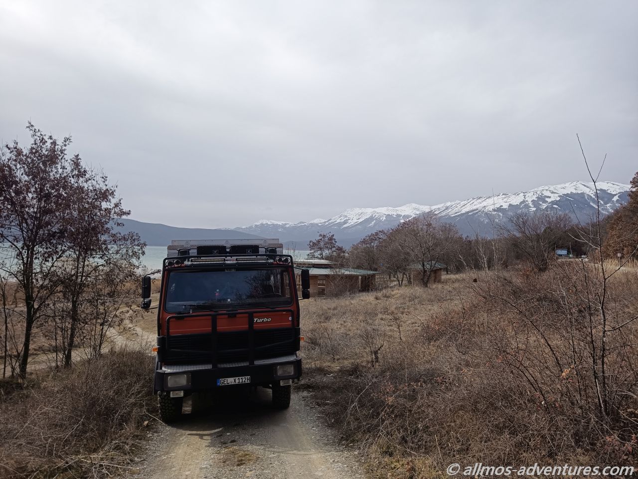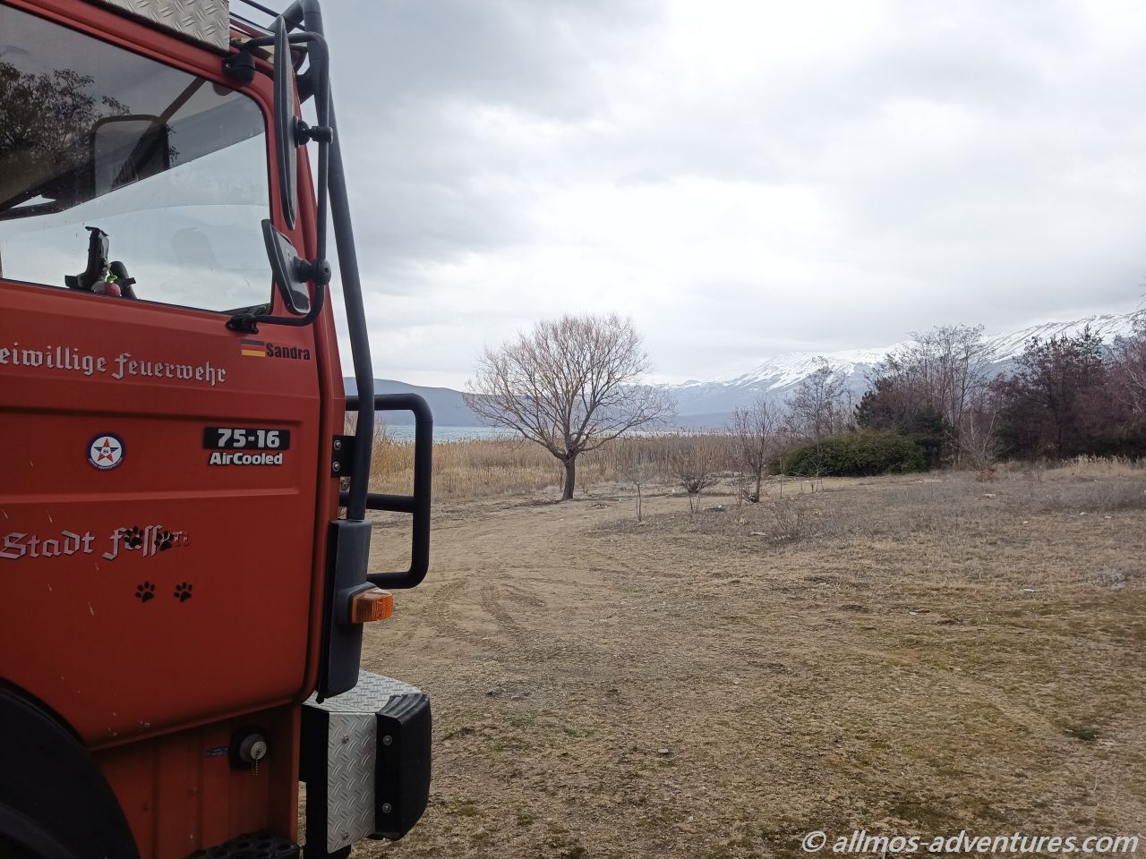 Daher suchten wir uns einen Übernachtungsplatz am Prespa-See. Zwischen kleinen Müllbergen parkten wir neben dem tieferen Sand ein. In den Sand wollten wir uns nicht stellen, denn leider war Regen vorhergesagt. Tatsächlich begann es auch leicht zu tröpfeln, als wir eingeparkt hatten.