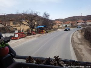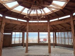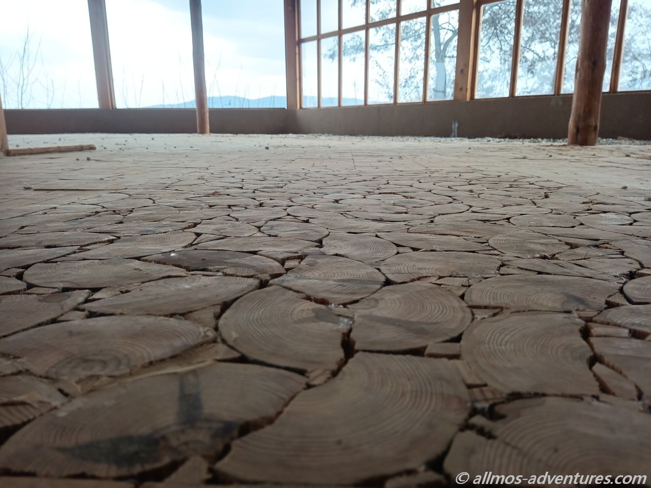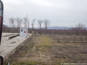 Frank unterhielt sich am Morgen mit einem Nordmazedonier. Dieser erzählte, dass der Holzpavillion, an dem wir standen, einem Freund von ihm gehört. Nachdem dieser den Pavillion (der eine Bar werden sollte) und die Toiletten fertiggestellt hatte, wurde ihm jedoch kein Strom verlegt. Und aus dem Betrieb einer Bar wurde somit nichts. Für uns unverständlich, weil nur wenige hundert Meter weiter Gebäude stehen.