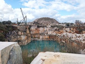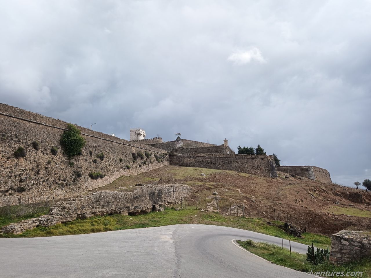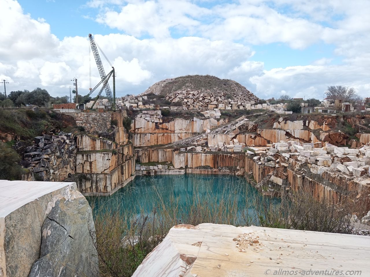 Zwischen Estremoz und Elvas scheint das Marmorabbaugebiet Portugals zu liegen, von dem wir bis dato nichts wussten. Wir kamen an riesig aufgetürmten Haufen mit Marmorblöcken vorbei und konnten es uns nicht nehmen lassen ein paar Schritte auf einem der Gelände zu wagen. Nur wenige Meter unterhalb der Erdoberfläche befinden sich die Marmorschichten. Sehr beeindruckend. Wir nahmen weiterhin Kurs Richtung Osten, bis zur Stadt Elvas.