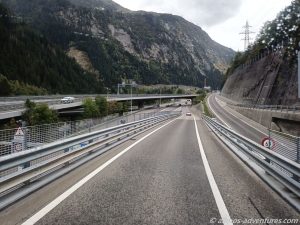Unabsichtlich fuhren wir durch unseren Pausenstopp in Wassen an dem Stau, der sich in Wassen vor dem ersten Tunnel bildete, dran vorbei. Beide Fahrtrichtungen teilen sich die fast 17 km lange Röhre. Wir kamen zügig durch den Tunnel und wurden am anderen Ende beinah von Sonnenschein empfangen. Nicht wirklich, aber es sah wettermäßig freundlicher aus.