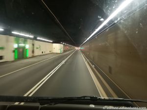 In der Gegenrichtung staute es sich auf einigen Kilometern durch den Tunnel. Wie gut, dass in unserer Richtung nicht so viel los war. Sonst hätten wir den Stau vermutlich ausgesessen.
