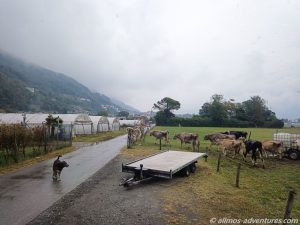 In Sementina parkten wir Allmo in der Nähe von einem Fußballplatz, wo auch gerade ein Spiel stattfand, oder es war nur Training. Unsere Nachbarn muhten uns freundlich zu. Sie wurden jedoch später vom Landwirt abgeholt.