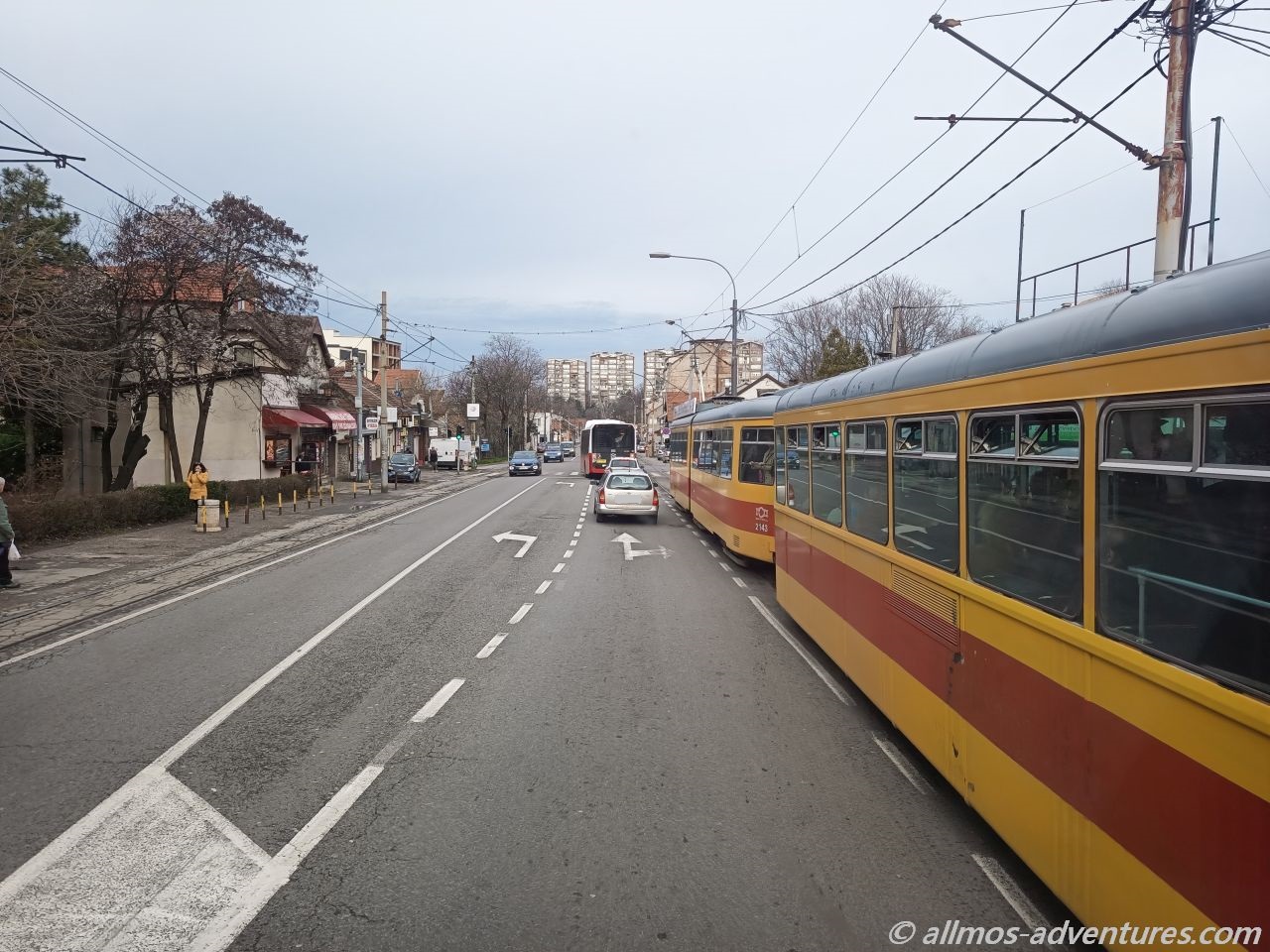 Belgrad, die Hauptstadt Serbiens und die frühere Hauptstadt der Republik Jugoslawien, wartete auf uns. Für die gut 35 Kilometer benötigten wir dann doch etwas über eine Stunde. Wir durchfuhren Belgrad von Ost nach West und kämpften uns durch die letzten Ausläufer des Berufsverkehrs. Vielleicht ist auf der Straße auch zu anderen Uhrzeiten viel los; wir wissen es nicht. Spannend wurde es als plötzlich auch noch Straßenbahnen im Straßenverkehr mitspielten. Als wenn PKWs und Busse allein nicht schon ausgereicht hätten. Von beidem gab es reichlich.