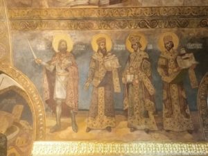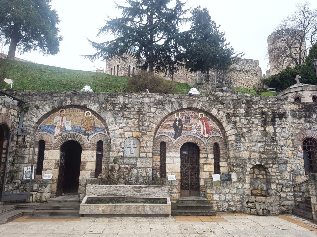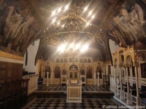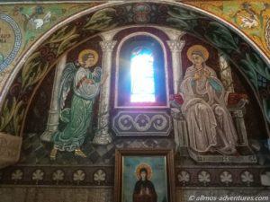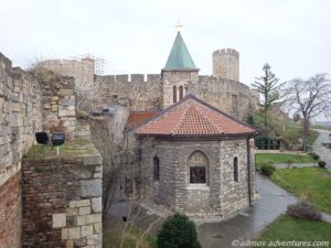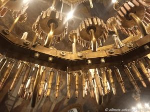 Wir folgten der Donau noch ein Stück und bogen dann zur Festung von Belgrad ab. Diese befindet sich auf einer großen Fläche auf einem kleinen Hügel an der Donau. Zwei alte Kirchen sahen wir uns von innen an. In der einen Kirche bestanden die Wandbilder aus zigtausend Mosaiken. Ein orthodoxer Priester fing an mit einer Dame zu singen. Wir lauschten kurz den Klängen und traten dann den Rückzug an. In der anderen Kirche bestanden die Kronleuchter aus Patronen. Ist halt mal was anderes.