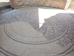 Unter einem überdachten Bereich befindet sich ein großes Bodenmosaik. Was für eine Puzzle-Arbeit es gewesen sein muss, dieses Mosaik so zu legen.