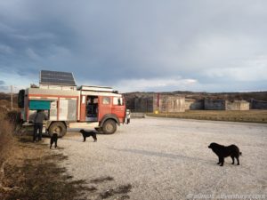 Auf dem Schotterparkplatz vor dem Gelände parkten wir Allmo direkt passend für die Nacht ein. Denn viel mehr fahren wollten wir heute nicht und warum dann nicht direkt hierbleiben?