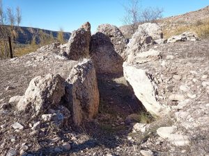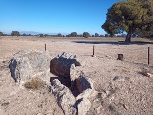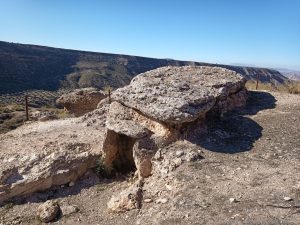 Wir stoppten noch an der Ruta de Hoyas del Conquin, um uns die Dolmen rechts und links der Straße anzusehen. Dort befand sich ein sehr gut erhaltenes Grab, mit schön aufrecht stehenden Seitenwänden und Deckel.