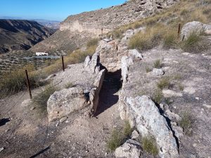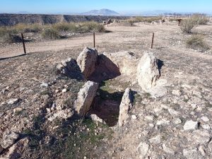 Auf dem Hinweg hatten wir ein Schild gesehen, dass auf Megalithen hinwies. Diese Steingräber befinden sich kurz vor der Ortschaft Gorafe. Mit Blick auf die verschneiten Berge der Sierra Nevada nahmen wir Kurs auf diesen Ort.
