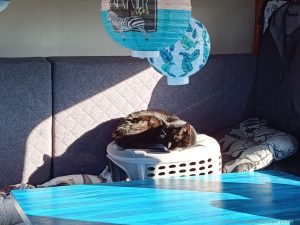 Heute Nacht schien es nicht ganz so kalt gewesen zu sein, zumindest war die Windschutzscheibe nicht gefroren. Ohne die Heizung kamen wir beim Frühstück dennoch nicht aus.