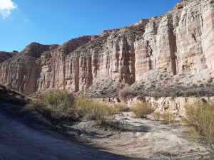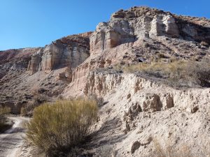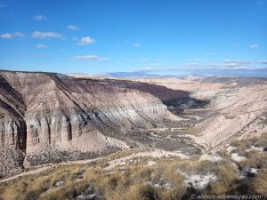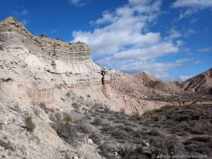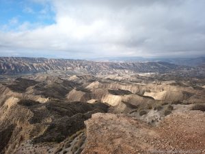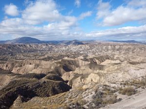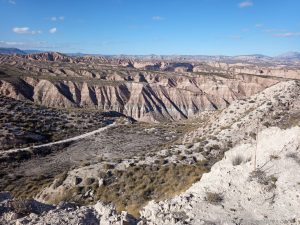 Danach nahmen wir Abschied und es ging auf die Ruta del Desierto de Gorafe – die mit 24 km angegeben wird –  in den Canyon hinein. Die Landschaft ist kaum in Worte zu fassen. Die Berge mit ihren unterschiedlichen Farben und Strukturen zwangen uns immer wieder zum Anhalten, Fotos schießen, die Landschaft genießen. Es herrschte eine unglaubliche Stille.