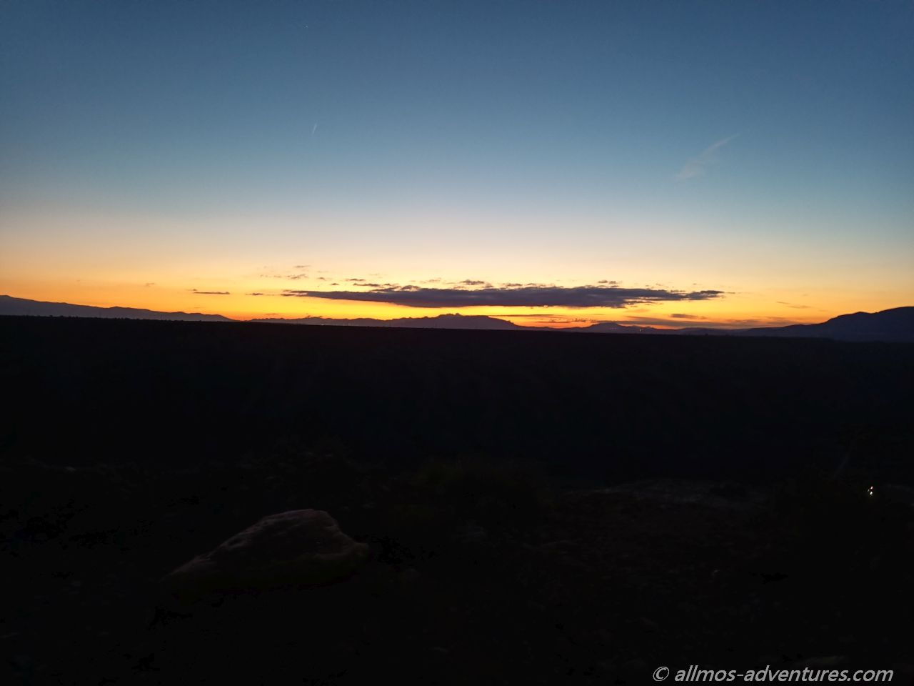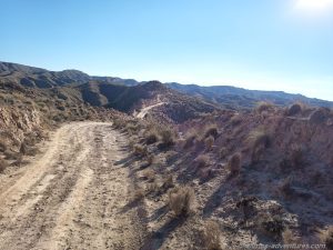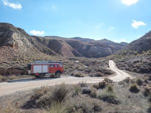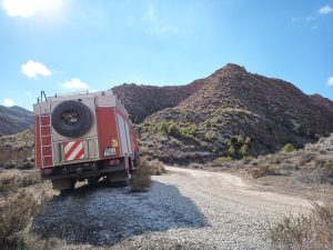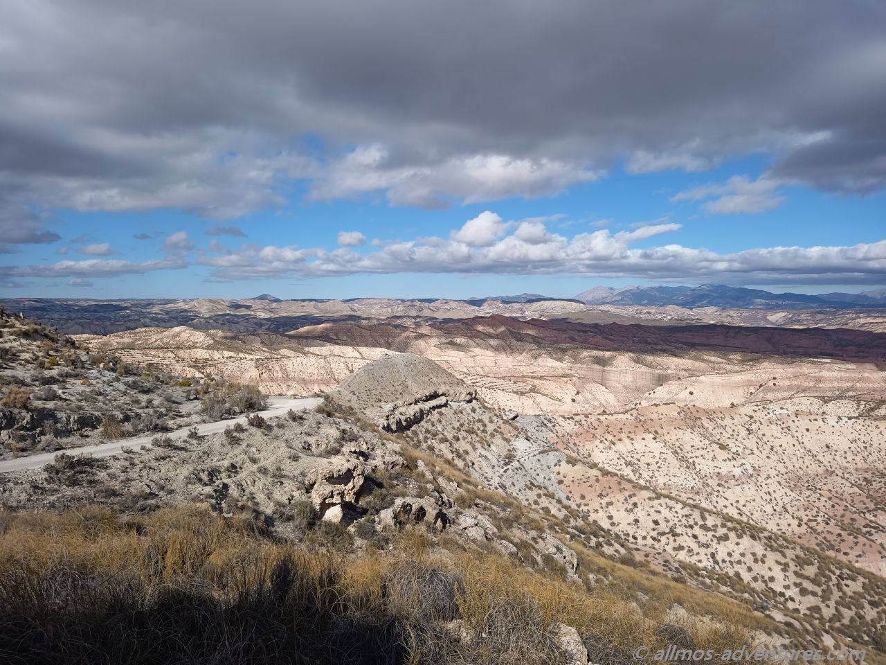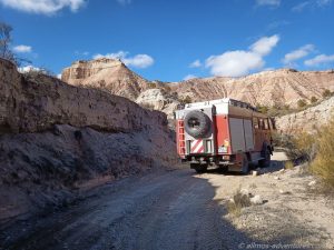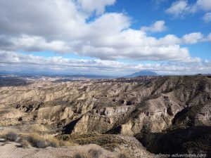 Der heutige Tag lässt sich nur schwer in Worte fassen. Doch fangen wir von vorne an. Eigentlich wollten wir heute wieder Richtung Guadix und dort wandern. Am Morgen kam Frank auf die Idee, dass wir hier doch eine der Off-Road Strecken fahren könnten und dann zum Wandern weiterfahren. Seine ausgewählte Strecke war über 60 km lang und endete irgendwo im nirgendwo. Unser Tank war ungefähr halbvoll, der Reservetank leer. Da kam so eine Strecke wohl nicht in Frage.