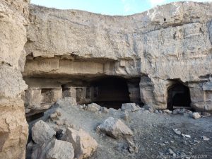 Von den Gräbern war mal mehr und mal weniger viel zu sehen. Die „Deckel“ fehlten überall und die Steine standen krumm und schief. Zwei Greifvögel (Gänsegeier?) schwebten über uns.