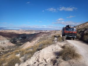 Nachdem ich telefoniert hatte und Franky ein wenig mit der Drohne geflogen war wollten wir in Richtung Guadix durchstarten, um zunächst einzukaufen und dann an das Ende der Welt zu wandern.