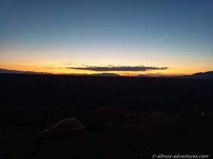 Später färbte die Sonne beim Untergehen die Bergsilhouette in unglaubliche rot-orange Töne.