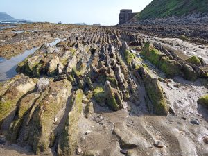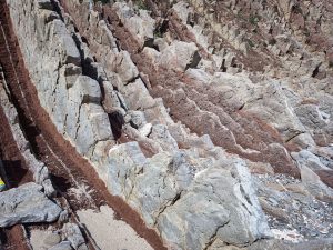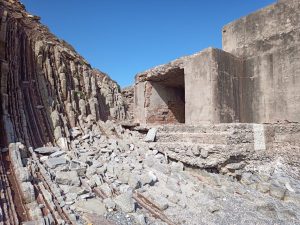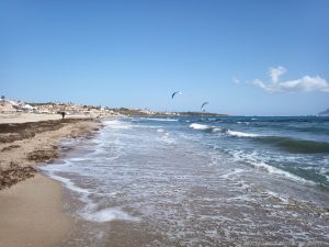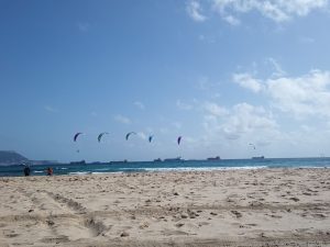 Ein paar Batterien waren dort in den Felsen integriert. Die Natur hatte davor eine interessante Formation hinterlassen, sah aus wie die Rücken ganz vieler Krokodile. Nachdem Frank sein Shirt verloren und wiedergefunden hatte lagen wir noch eine Weile in der Sonne. Kite Surfer hatten ihre Freude an dem Wind. Sogar Leute der polnischen Nationalmannschaft hatten ihre Segel gehisst.