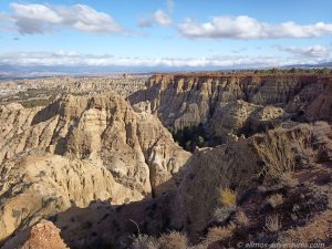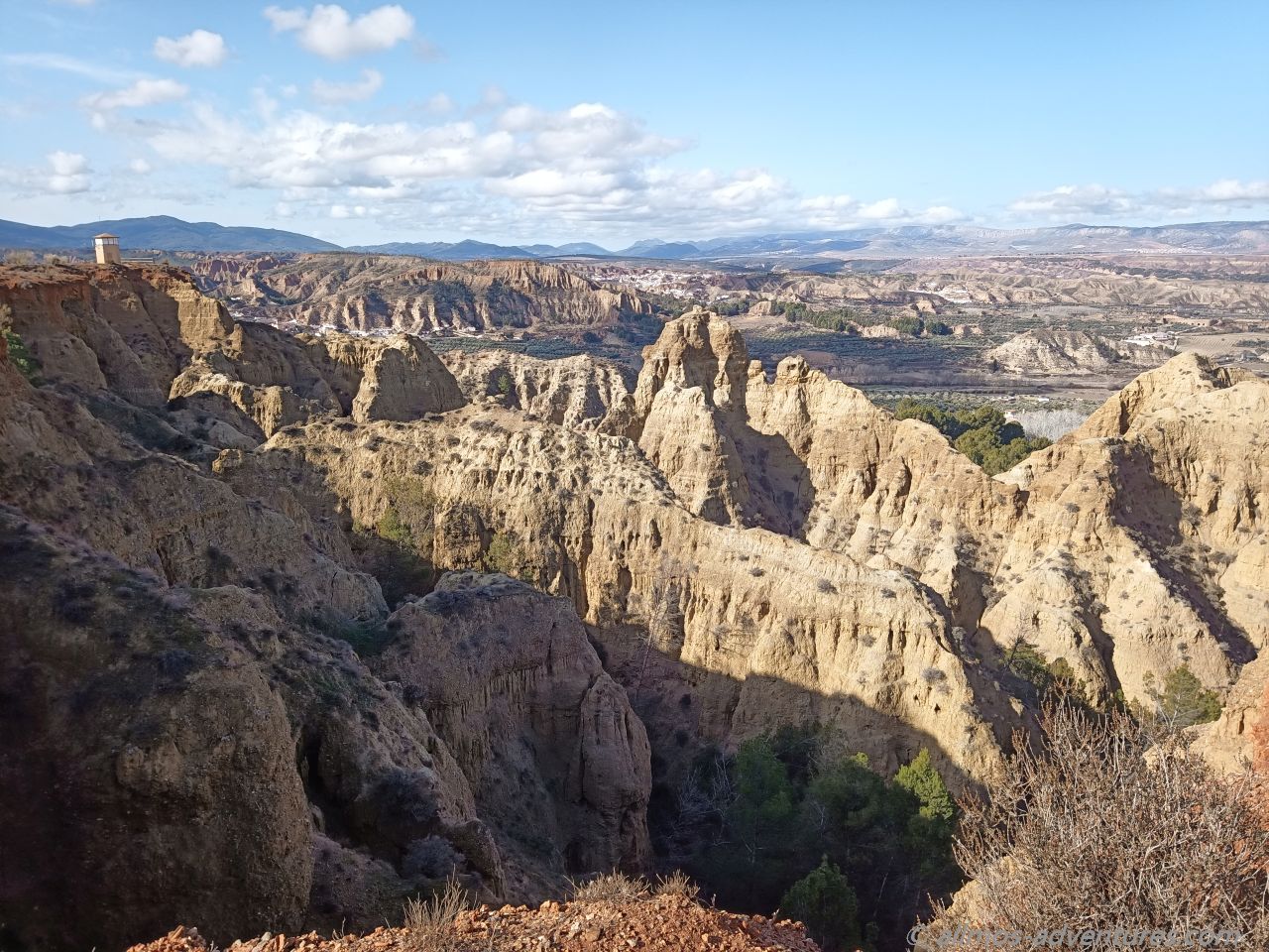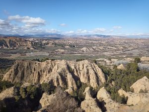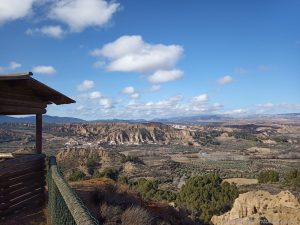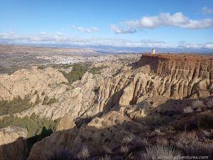 Als wir vor rund einer Woche schon mal in Guadix waren, hatten wir im Nachbarort Purullena Badlands gesehen. Dort wollten wir zu einem Aussichtspunkt wandern. Das Ende der Welt (Fin del Mundo) war uns dann aber doch zu weit weg und somit begnügten wir uns mit anderen Aussichtspunkten.